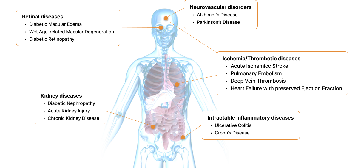 paradigms across the eye, kidney, brain, cardiovascular, and inflammatory diseases.